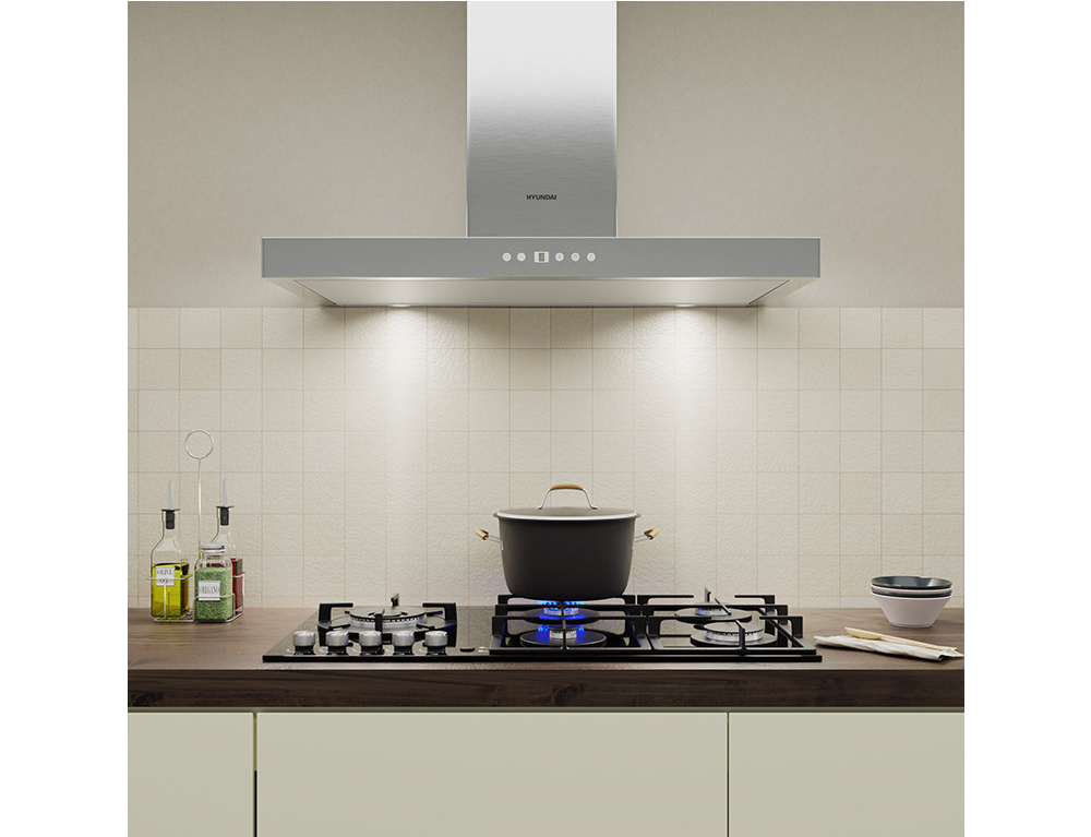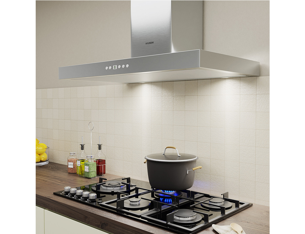 Απορροφητήρας Hyundai HHD21-T3790EL/X με πλάτος 90cm και απορροφητική ισχύ 520 m³/h - Inox