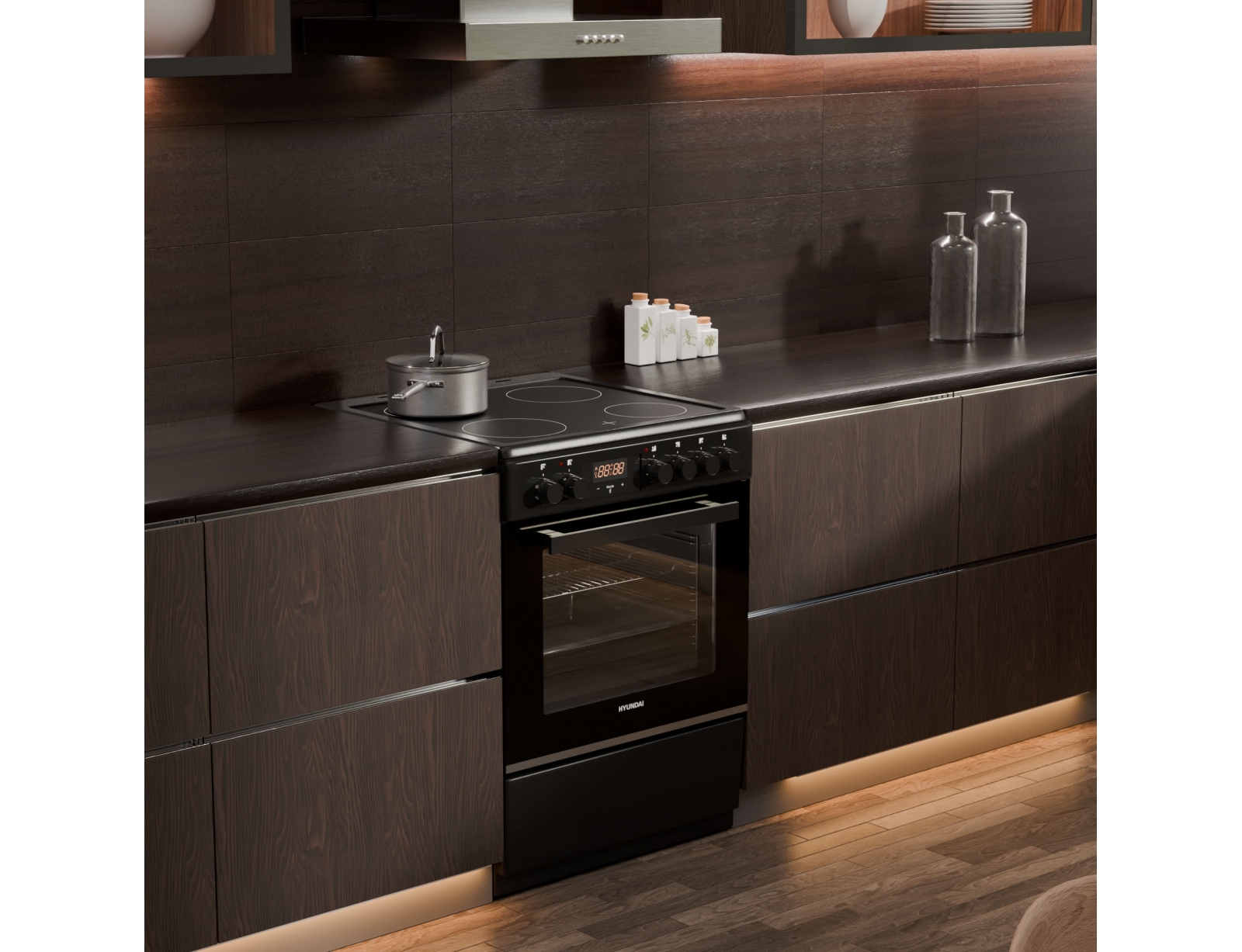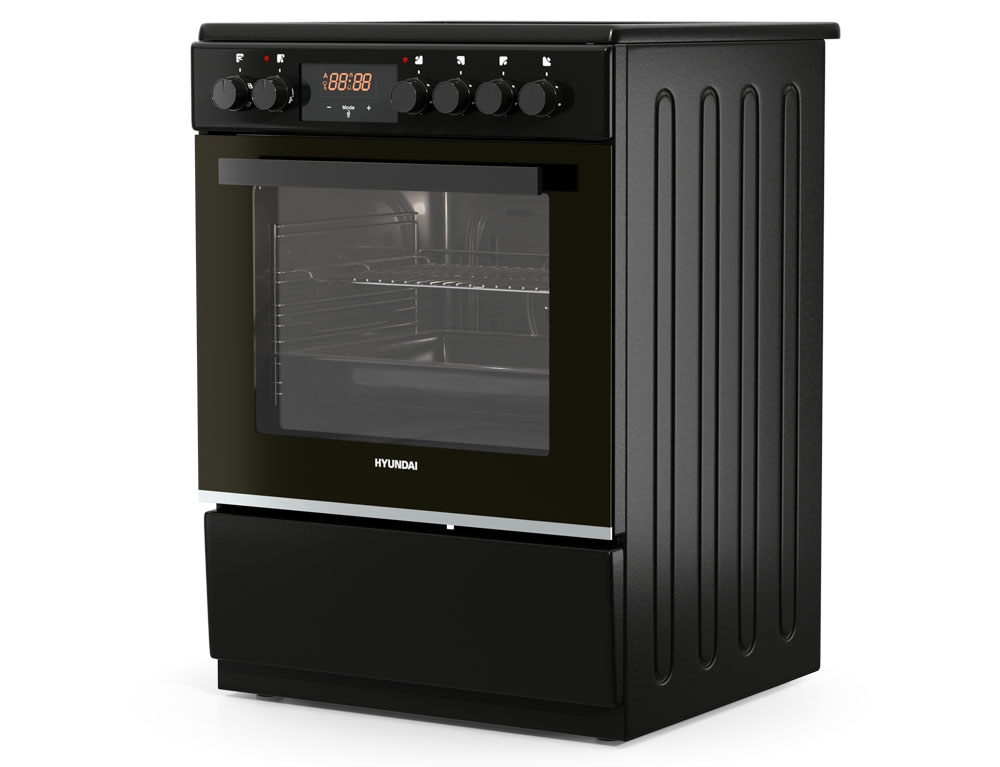 Κουζίνα Hyundai HCVC24V-7260V/BL με μεγάλη χωρητικότητα φούρνου 69 λίτρα, ενεργειακή κλάση Α, 4 κεραμικές εστίες μαγειρέματος και 5 λειτουργίες ψησίματος.