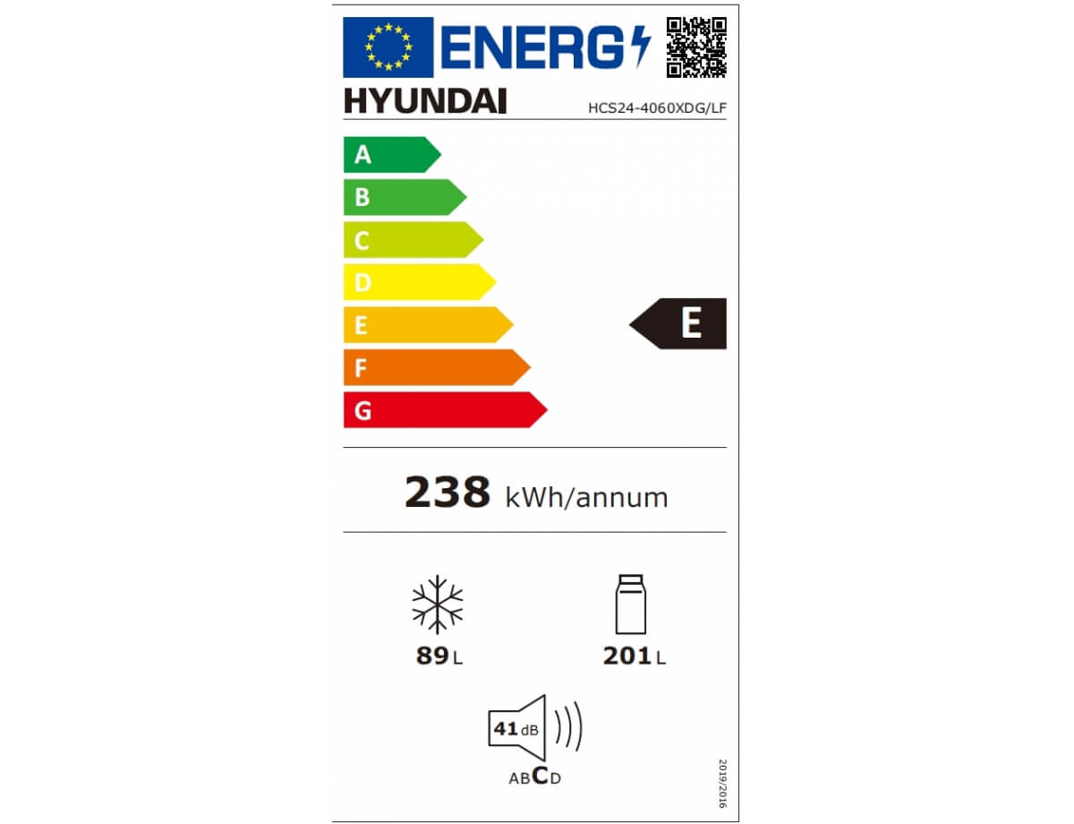 -> Ψυγειοκαταψύκτης Hyundai HCS24-4060XDG/LF Total No Frost με Συνολική Χωρητικότητα 290L, Ενεργειακή Κλάση E και Ύψος 185cm