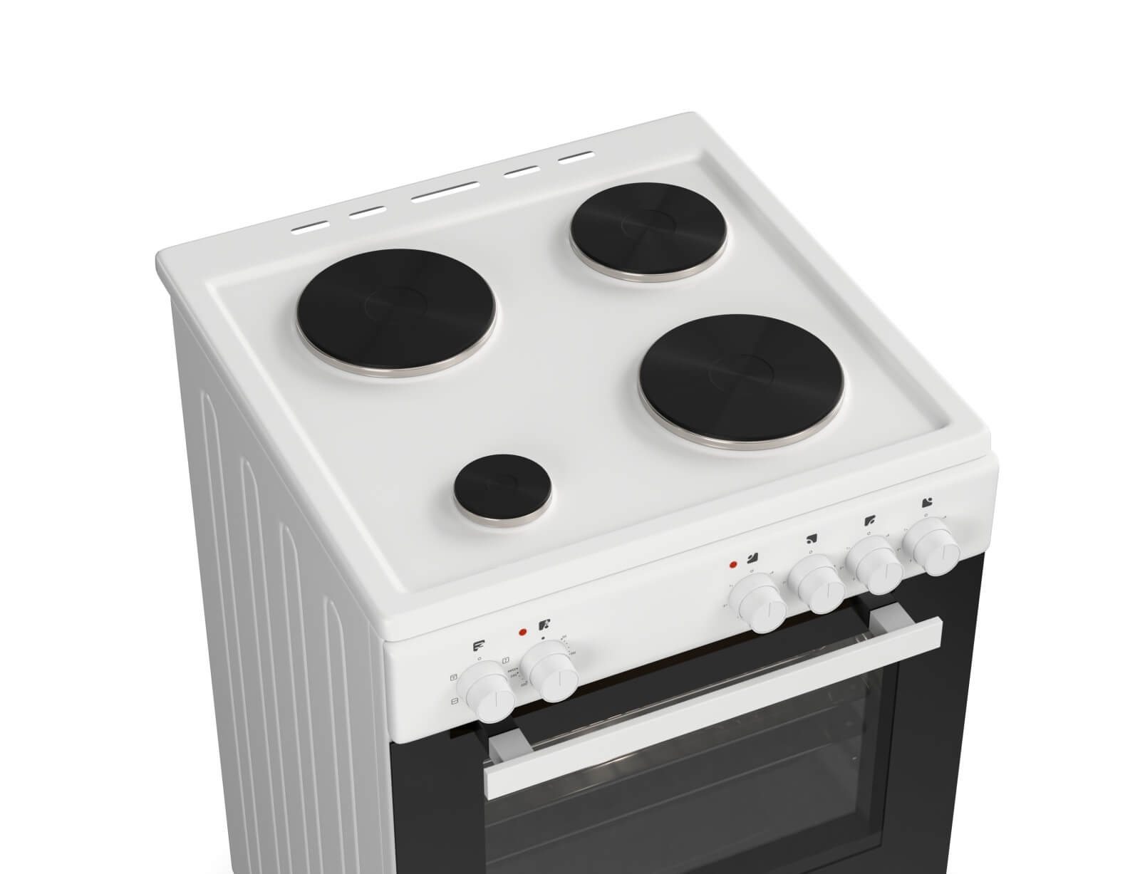 Κουζίνα Hyundai HCMU24V-7260ES/W με πολυλειτουργικό φούρνο, χωρητικότητα φούρνου 72 λίτρα, ενεργειακή κλάση Α, 4 εμαγιέ εστίες μαγειρέματος και 5 λειτουργίες ψησίματος.