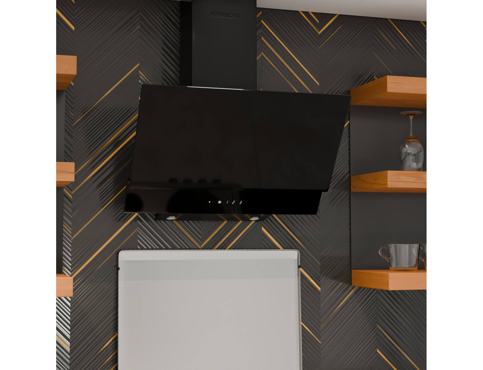 Ο απορροφητήρας καμινάδα Hyundai HHD24-GL4661B  διαθέτει κομψό σχεδιασμό σε μοντέρνο μαύρο χρώμα, που θα αναδείξει την κουζίνα σας, ενώ παράλληλα θα σας αφήσει απόλυτα ικανοποιημένους από τις επιδόσεις του.