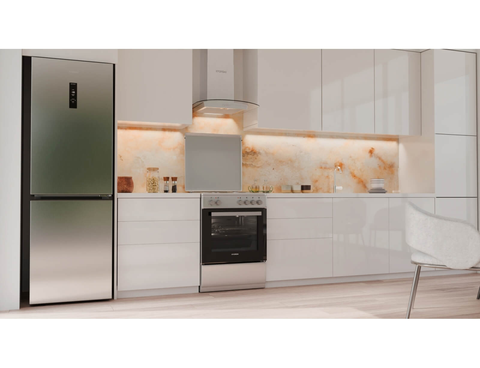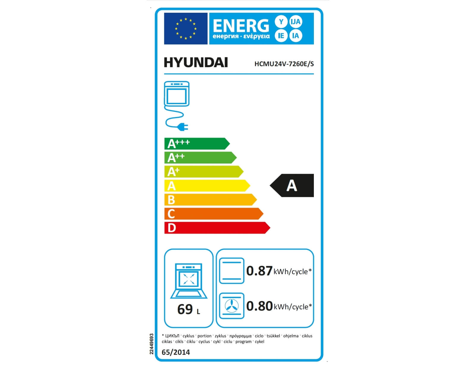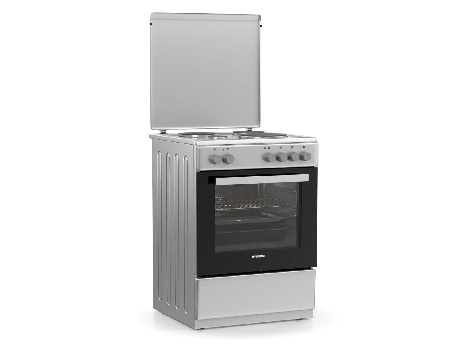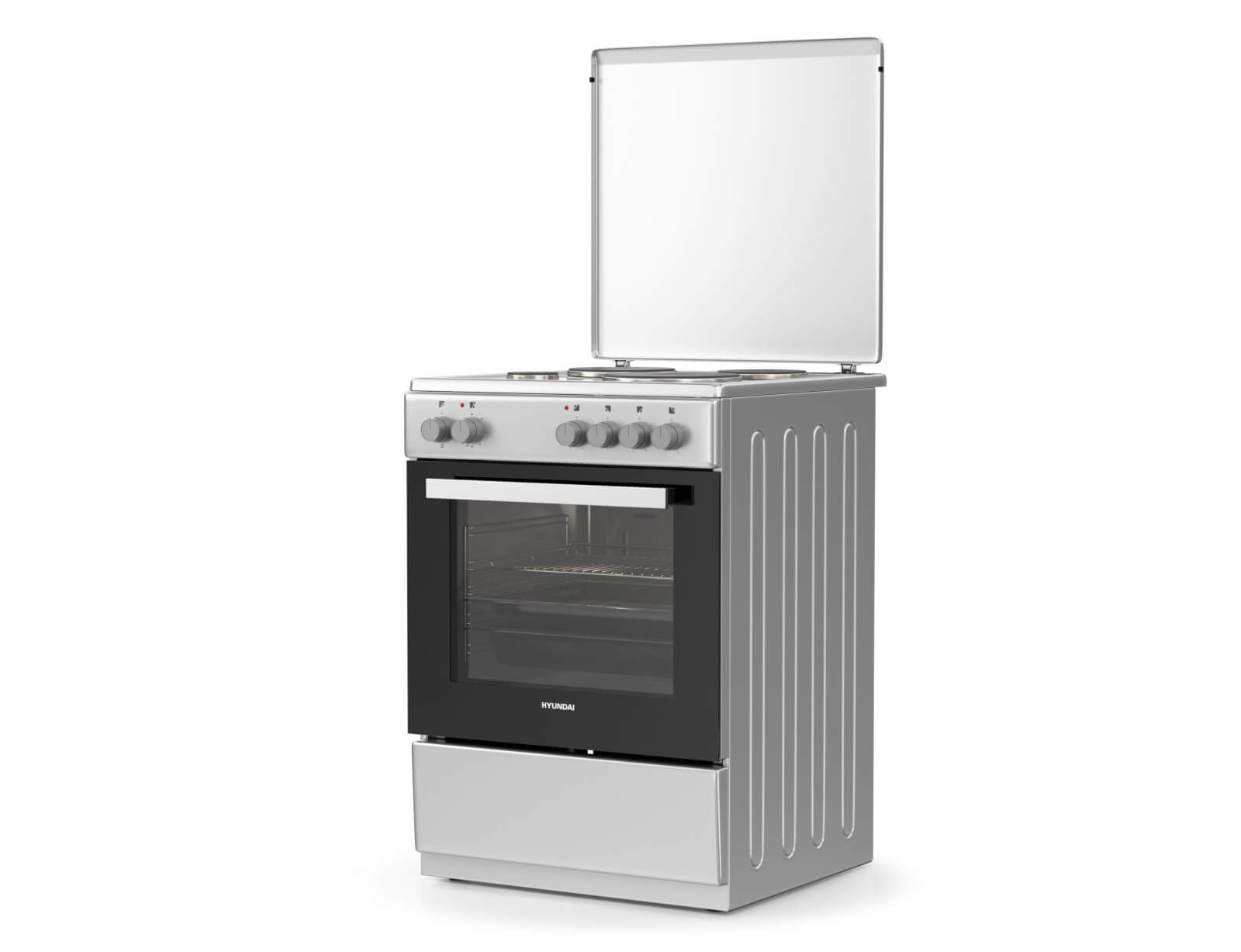 Κουζίνα Hyundai HCMU24V-7260E/S με ηλεκτρικό φούρνο, χωρητικότητα φούρνου 69 λίτρα, ενεργειακή κλάση Α, 4 εμαγιέ εστίες μαγειρέματος και 5 λειτουργίες ψησίματος.